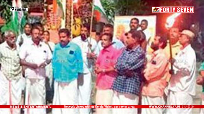 പരവൂർ | അഴിമതിക്ക് കൂട്ടു നിൽക്കുന്ന മുഖ്യമന്ത്രി പിണറായി വിജയൻ രാജിവയ്ക്കണമെന്നാവശ്യപ്പെട്ട് കോൺഗ്രസ് പൂതക്കുളം സൗത്ത് മണ്ഡലം കമ്മിറ്റി പന്തംകൊളുത്തി പ്രകടനം നടത്തി. ഡി.സി.സി. ജനറൽ സെക്രട്ടറി പ്രജീഷ്കുമാർ ഉദ്ഘാടനം ചെയ്തു. മണ്ഡലം പ്രസിഡന്റ് കെ.സുനിൽകുമാർ അധ്യക്ഷത വഹിച്ചു. അനിൽകുമാർ, മനീഷ്, നൗഷാദ്, വിനോദ്, മണിയൻ, രാജീവൻ പിള്ള, ബിനുകുമാരി, പരമേശ്വരൻ, സുരേന്ദ്രൻ പിള്ള തുടങ്ങിയവർ സംസാരിച്ചു.