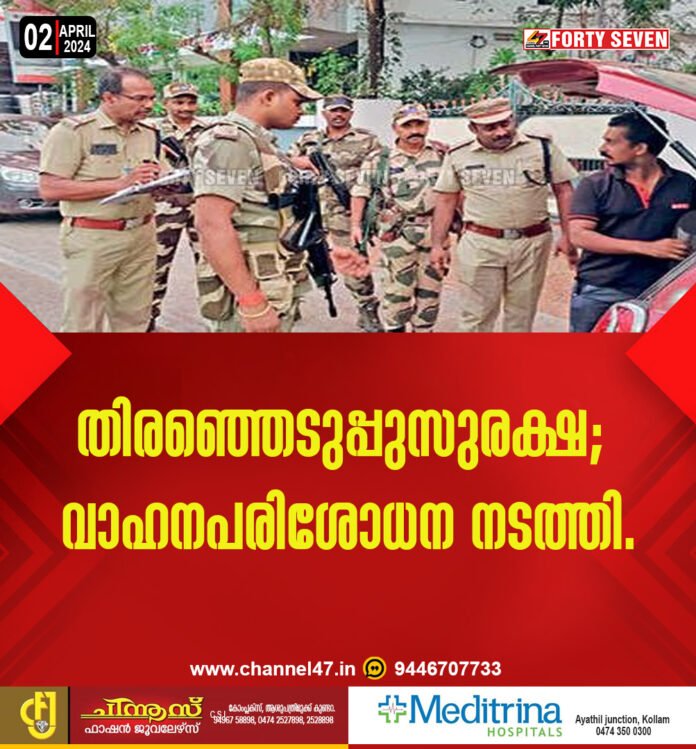 കൊട്ടിയം | തിരഞ്ഞെടുപ്പുസുരക്ഷയുടെ ഭാഗമായി സി.ആർ.പി.എഫും കണ്ണനല്ലൂർ പോലീസും ചേർന്ന് വാഹനപരിശോധന കർശനമാക്കി.
