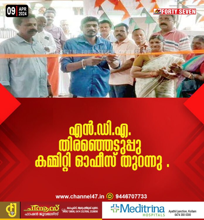 ചാത്തന്നൂർ | ചിറക്കരയിൽ എൻ.ഡി.എ. തിരഞ്ഞെടുപ്പു കമ്മിറ്റി ഓഫീസ് പ്രവർത്തനം തുടങ്ങി. ബി.ജെ.പി. ചാത്തന്നൂർ മണ്ഡലം പ്രസിഡന്റ് കൃഷ്ണരാജ് ഓഫീസ് ഉദ്ഘാടനം ചെയ്തു. ഏരിയ പ്രസിഡന്റ് ദിലീപ്, ജനറൽ സെക്രട്ടറി ഗിരീഷ്കുമാർ, മദനൻ, സുഗതൻ, സുഭാഷിണി തുടങ്ങിയവർ പങ്കെടുത്തു. കൊട്ടിയം ഏരിയ 10-ാം ബൂത്ത് തിരഞ്ഞെടുപ്പ് കമ്മിറ്റി ഓഫീസ് ഗ്രാമപ്പഞ്ചായത്ത് അംഗം ശ്രീകല ഉദ്ഘാടനം ചെയ്തു. ബൂത്ത് പ്രസിഡന്റ് സുരേഷ്കുമാർ പ്രസംഗിച്ചു.