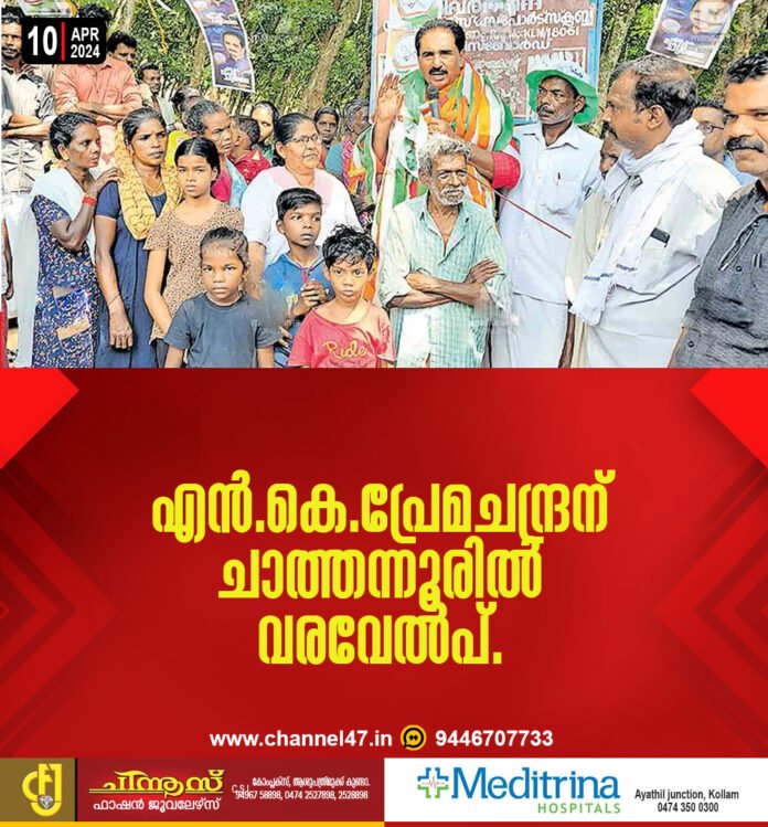 കൊല്ലം | യുഡിഎഫ് സ്ഥാനാർഥി എൻ.കെ.പ്രേമചന്ദ്രന് ചാത്തന്നൂർ മണ്ഡലത്തിന്റെ വിവിധ ഭാഗങ്ങളിൽ വൻവരവേൽപ്. ഓരോ കേന്ദ്രങ്ങളിലും നൂറുകണക്കിനു പേർ സ്ഥാനാർഥിയെ സ്വീകരിക്കാനെത്തി. ഇഎസ്ഐ ആശുപത്രിയിൽ നടത്തിയ വികസന പ്രവർത്തനങ്ങൾ, ഇഎസ്ഐ അംഗങ്ങളുടെ മക്കൾക്ക് എംബിബിഎസ് സീറ്റ് സംവരണം, പ്രാദേശിക വികസന ഫണ്ട് ഉപയോഗിച്ചു ചാത്തന്നൂർ മേഖലയിലെ വിവിധ ഗ്രാമീണ റോഡുകൾ, ശുദ്ധജല പദ്ധതികൾ എന്നിവയുടെ നിർമാണം തുടങ്ങിയ വികസന പദ്ധതികൾ പ്രേമചന്ദ്രൻ വിശദീകരിച്ചു. ഗ്രാമീണ ജനതയ്ക്ക് മെച്ചപ്പെട്ട സാമ്പത്തിക വികസനം ഉറപ്പാക്കുന്ന തൊഴിലുറപ്പ് പദ്ധതി വഴി ഒട്ടേറെ ജനങ്ങൾക്ക് സഹായഹസ്തമെത്തിക്കാൻ കഴിഞ്ഞിട്ടുള്ളതും ഓർമിപ്പിച്ചു. കശുവണ്ടി മേഖലയിൽ നടത്തിയ ഇടപെടലുകളും കയ്യടി നേടി.