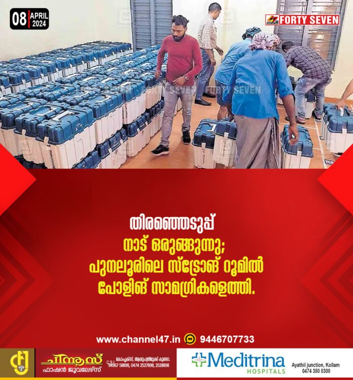 നിയോജകമണ്ഡലത്തിലെ 196 പോളിങ് ബൂത്തുകളിലേക്ക് ആവശ്യമായ ഇലക്ട്രോണിക്സ് വോട്ടിങ് യന്ത്രം അതിന്റെ റിസർവ് ഉൾപ്പെടെ 235, ബാലറ്റ് യൂണിറ്റുകൾ 235, കൺട്രോൾ യൂണിറ്റുകൾ 254 എന്നിങ്ങനെയാണു പുനലൂരിൽ എത്തിച്ചത്. വോട്ടെണ്ണൽ കേന്ദ്രമായ ഗവ.എച്ച്എസ്എസ് സ്കൂളിലെ സ്ട്രോങ് റൂമിലാണു ഇവ സൂക്ഷിച്ചിരിക്കുന്നത്. കൊല്ലത്ത് നിന്നുള്ള ഡോഗ് സ്ക്വാഡ് സ്ട്രോങ് റൂം പരിസരവും പരിശോധിച്ചു അസ്വാഭാവികമായി ഒന്നുമില്ലെന്ന് ഉറപ്പിച്ചു. പൊലീസിന്റെയും രാഷ്ട്രീയ പാർട്ടി പ്രതിനിധികളുടെയും സാന്നിധ്യം ഉണ്ടായിരുന്നു.