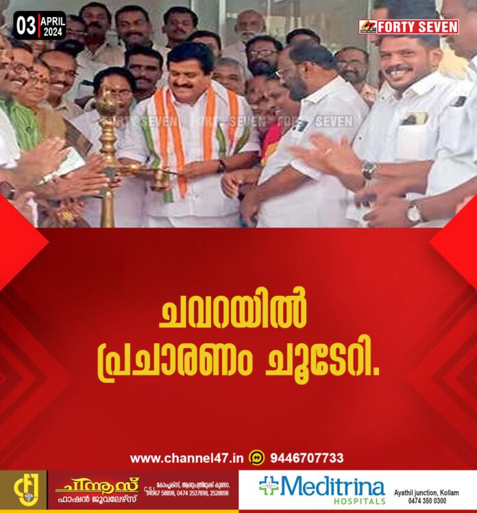 കൊല്ലം പാർലമെൻറ് മണ്ഡലത്തിലെ യു.ഡി.എഫ്. സ്ഥാനാർഥി എൻ.കെ.പ്രേമചന്ദ്രന്റെ തിരഞ്ഞെടുപ്പ് പ്രചാരണാർഥം ചവറ നിയോജകമണ്ഡലം കേന്ദ്ര തിരഞ്ഞെടുപ്പ് കമ്മിറ്റി ഓഫീസിന്റെ ഉദ്ഘാടനം മുൻമന്ത്രി വി.എസ്.ശിവകുമാർ നിർവഹിച്ചു. നിയോജകമണ്ഡലം ചെയർമാൻ കോലത്ത് വേണുഗോപാൽ അധ്യക്ഷത വഹിച്ചു. ആർ.എസ്.പി. സംസ്ഥാന സെക്രട്ടറി ഷിബു ബേബിജോൺ, കെ.സുരേഷ്ബാബു, പി.ജർമിയാസ്, സന്തോഷ് തുപ്പാശ്ശേരി, ചക്കിനാൽ സനൽകുമാർ, ജസ്റ്റിൻ ജോൺ, ജയിൻ ആൻസിൽ, സുധീഷ്കുമാർ, മാമൂലയിൽ സേതുക്കുട്ടൻ എന്നിവർ പ്രസംഗിച്ചു.
