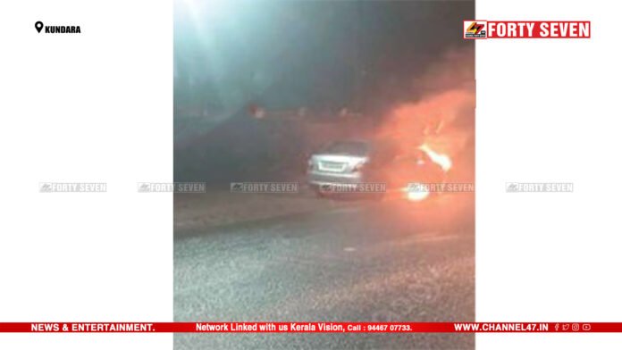 അഗ്നിരക്ഷാസേനയെത്തിയപ്പോഴേക്കും വാഹനത്തിൻ്റെ മുൻഭാഗം പൂർണമായും കത്തി നശിച്ചിരുന്നു.