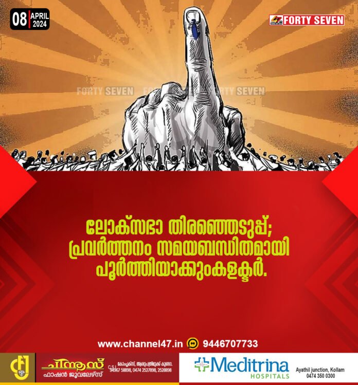 കൊല്ലം | ലോക്സഭാ തിരഞ്ഞെടുപ്പ് സുഗമമായി നടത്തുന്നതിനുള്ള പ്രവർത്തനങ്ങൾ സമയബന്ധിതമായി നടപ്പാക്കുന്നെന്ന് വരണാധികാരികൂടിയായ കളക്ടർ എൻ.ദേവിദാസ്. ഉപ വരണാധികാരികൾക്കായി നടത്തിയ യോഗത്തിൽ അധ്യക്ഷത വഹിക്കുകയായിരുന്നു അദ്ദേഹം.