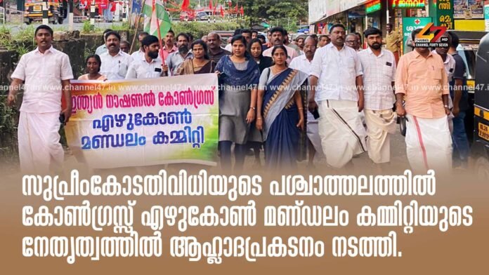 എഴുകോൺ | രാഹുൽ ഗാന്ധിക്കെതിരായ കോടതി വിധി സ്റ്റേ ചെയ്ത സുപ്രീംകോടതിവിധിയുടെ പശ്ചാത്തലത്തിൽ കോൺഗ്രസ്സ് എഴുകോൺ മണ്ഡലം കമ്മിറ്റിയുടെ നേതൃത്വത്തിൽ ആഹ്ലാദപ്രകടനം നടത്തി. എഴുകൊൺ കോൺഗ്രസ്സ് ഭവനിൽ നിന്നും ആരംഭിച്ച പ്രകടനം ജംഗ്ഷൻ ചുറ്റി എഴുകൊൺ രാജീവ്ജി സ്മൃതി മണ്ഡപത്തിനു മുന്നിൽ സമാപിച്ചു. ഡി.സി.സി. ജനറൽ സെക്രട്ടറിമാരായ പി.ഹരികുമാർ, അഡ്വ.സവിൻ സത്യൻ, ബി.രാജേന്ദ്രൻ നായർ, മണ്ഡലം പ്രസിഡന്റ് എസ്.എച്ച്. കനകദാസ്, പഞ്ചായത്ത് പ്രസിഡന്റ് അഡ്വ.ബിജു എബ്രഹാം, അഡ്വ.രതീഷ് കിളിത്തട്ടിൽ, ബിജു ഫിലിപ്പ്, ടി.ആർ.ബിജു, പി.എസ്.അദ്വാനി, ആർ.ശിവകുമാർ, വി.സുഹർബാൻ, അഡ്വ.രവീന്ദ്രൻ, ജോർജ്ജ് പണിക്കർ, സി.രാജ്മോഹനൻ തുടങ്ങിയവർ പങ്കെടുത്തു.