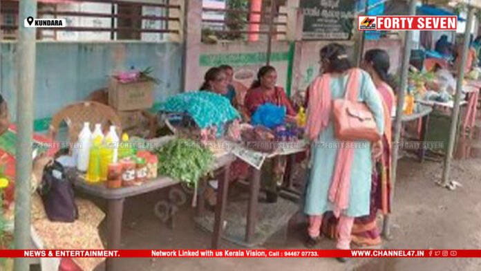 പൂതക്കുളം പഞ്ചായത്ത് ഓഫീസിനു മുൻവശം കുടുംബശ്രീയുടെ നേതൃത്വത്തിലുള്ള വിപണനമേളയുടെ വേദിയാണ്. സ്ത്രീകൾ അവർ നിർമിച്ച സാധനങ്ങൾ വിൽക്കുകയാണ്.