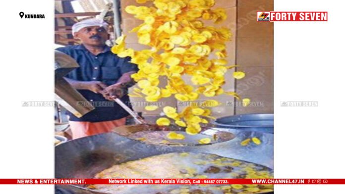 കൊല്ലം | ഓണംഅടുത്തതോടെ ഉപ്പേരി വിപണി സജീവമായി. ഏത്തക്കായ ഉപ്പേരീയും ശർക്കരവരട്ടിയുമില്ലാത്ത ഓണ സദ്യയെക്കുറിച്ച് ഓർക്കാനേ കഴിയില്ല. അതുകൊണ്ടു തന്നെ ഇത്തവണ നേരത്തെ ഉപ്പേരി വിപണി ഉണർന്നു. ബേക്കറികളിൽ തിളച്ച എണ്ണയിൽനിന്നു വറത്തുകോരുന്ന ഉപ്പേരി പായ്ക്കു ചെയ്ത് അപ്പപ്പോത്തന്നെ വിൽക്കുകയാണ്.